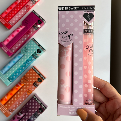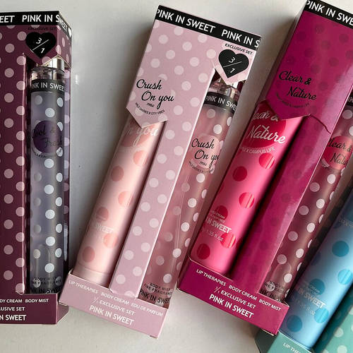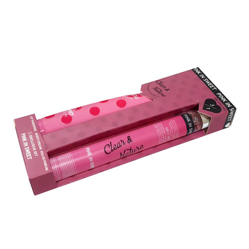 ست هدیه Pink In Sweet شامل یک کرم مرطوب کننده و ادکلنی بدن به حجم 40 گرم ،یک ادو پرفیوم به حجم 35 میلی لیتر میباشد. ادوکلن و کرم بدن Pink In Sweet مدل Clear & Nature دارای پخش بوی زیاد بوی ملایم و بسیار ماندگار میباشد که همین کیفیت بالا در عطر و بوی این محصول و ماندگاری آن باعث شده است که طرفداران بسیار زیادی داشته باشد و بسته بندی شیک و زیبای آن باعث شده است که گزینه ی بسیار مناسبی برای هدیه دادن هم باشد. هر کدام از ادوکلن و کرم بدن را میتوان به تنهایی استفاده کرد و از بوی جذاب وفوق العاده ی آن ها لذت برد اما اگر این دو با هم استفاده شوند ماندگاری آن بر روی بدنتان بطور عجیبی افزایش خواهد یافت. لوسیون این ست غیر چرب و مرطوب است.